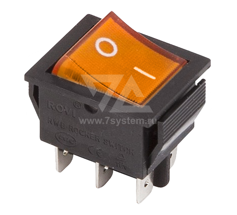 Выключатель SC-767 желтый с подсветкой (6с) (RWB-506, SC-767) предназначен для коммутации электрических цепей переменного тока напряжением до 250В. Клавишные (Рокерные) выключатели применяются в качестве комплектующих изделий различного электрооборудования (в сетевых фильтрах и удлинителях, аудио-оборудовании, блоках питания, электроустановках на различных производствах, автомобилях, и многих других местах). Такой клавишный переключатель имеет два положения. Принцип действия основан на перемещении клавиши в одну из позиций. Для переключения в нужное положение требуется приложить некоторые усилия на клавишу. Монтаж осуществляется без применения винтов на плоских панелях толщиной от 0.8мм до 3мм. Подключение контактов осуществляется плоской клеммой 6.6мм, либо с помощью пайки.