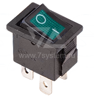 Выключатель SC-768 зеленый с подсветкой (4с) (RWB-207, SC-768) предназначен для коммутации электрических цепей переменного тока напряжением до 250В. Клавишные (Рокерные) выключатели применяются в качестве комплектующих изделий различного электрооборудования (в сетевых фильтрах и удлинителях, аудио-оборудовании, блоках питания, электроустановках на различных производствах, автомобилях, и многих других местах). Такой клавишный переключатель имеет два положения. Принцип действия основан на перемещении клавиши в одну из позиций. Для переключения в нужное положение требуется приложить некоторые усилия на клавишу. Монтаж осуществляется без применения винтов на плоских панелях толщиной от 0.8мм до 3мм. Подключение контактов осуществляется плоской клеммой, либо с помощью пайки.