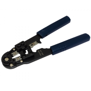Универсальный инструмент с храповым механизмом для обжима разъемов RJ-45, RJ-12 и RJ-11, а также для снятия изоляции и качественной обрезки телефонного кабеля и витой пары.