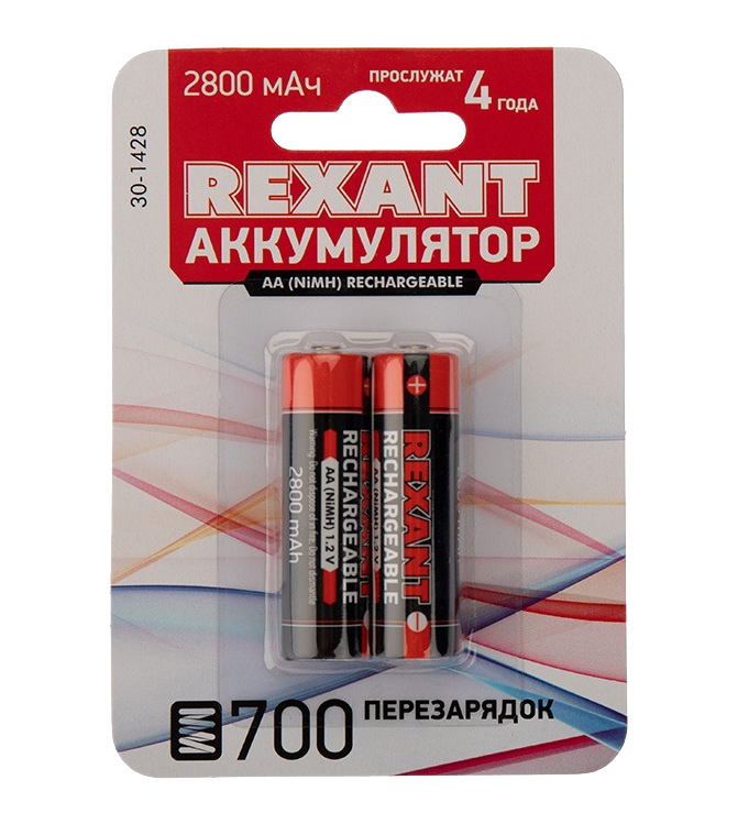 Версия для печатиАккумулятор AA Rexant, 1.2 В, 2.8 А.ч, 2 шт/упак