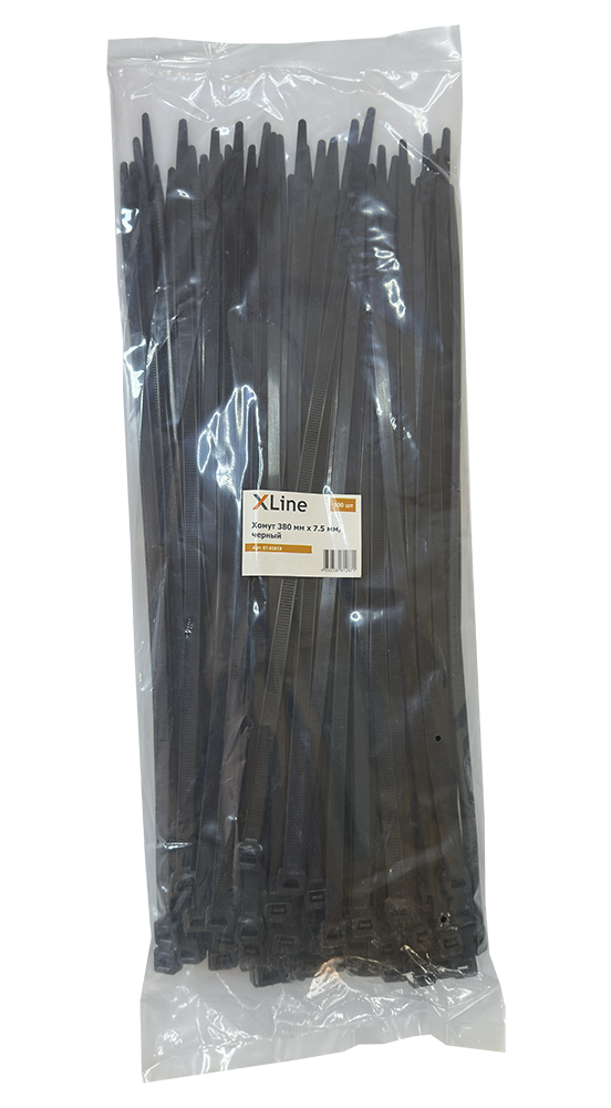 Хомут 380 мм x 7.5 мм X-Line, черный, 100 шт