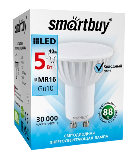 Светодиодная лампа Smartbuy Gu10 — энергосберегающая лампа направленного света, которая широко используется в помещениях — в различных точечных потолочных светильниках. Светодиодные лампы повторяют форму и размеры стандартных галогенных ламп MR16 и PAR16 и идеально подходят к любому светильнику, в котором используются данные типы ламп. Внешний вид и компактный размер лампы дают возможность устанавливать ее в открытые точечные светильники-споты для акцентного освещения.