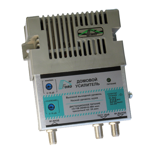 Домовой усилитель. Коэффициент усиления 37 дБ, Выходной уровень 106 дБмкВ.Статус: В наличии